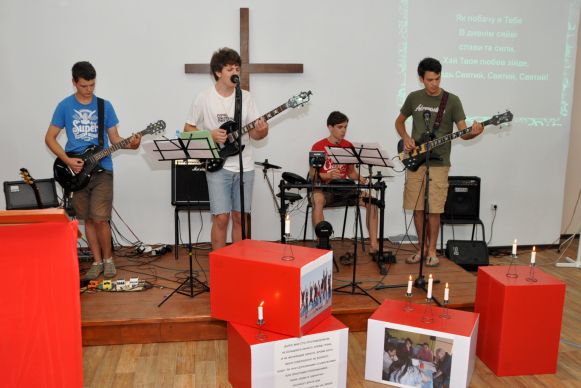 With the help of the district and utilizing new church principles, plans were made for a very intentional summer “experiment” they call “Emerge”. The community center was rented, and after a lot of publicity, gaming, fun activities and preview events, a ministry began to gel. The church members had a candle light prayer walk circling the town and prayed for the Holy Spirit to be poured out upon every person in the community. In a matter of a few months a newly formed “youth band” was taught a few worship songs and a Thursday night worship service was launched right there in the community center. A meal is served by volunteers, the band plays, and Becci preaches the gospel in a relevant way to that generation. Along with music some sort of drama, video, or other creative interpretation helps the message to relate. The beginning month was difficult and slow, but what is happening now is beyond everyone’s expectations!