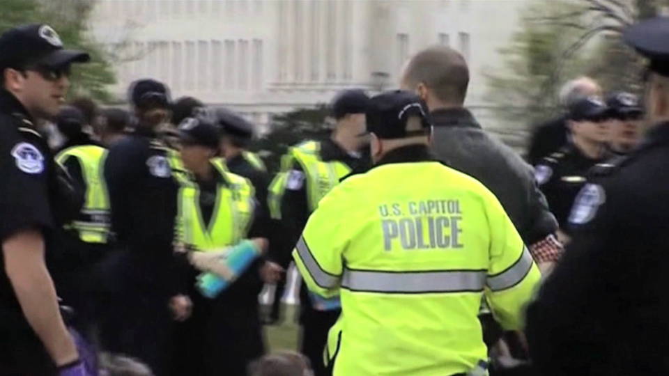 In Washington, D.C., police have arrested about 85 more protesters taking part in the "Democracy Sping" actions against corporate lobbying and big money in politics. This comes after more than 400 people were arrested after a sit-in at the Capitol on Monday. The corporate networks widely ignored Monday’s arrests. According to a tally by The Intercept, CNN did not devote any coverage to the protests, MSNBCmentioned them for 12 seconds, and Fox News discussed them for 17 seconds. CNNlater posted a short item online. Click here to see our interview with Democracy Spring organizer Kai Newkirk.
