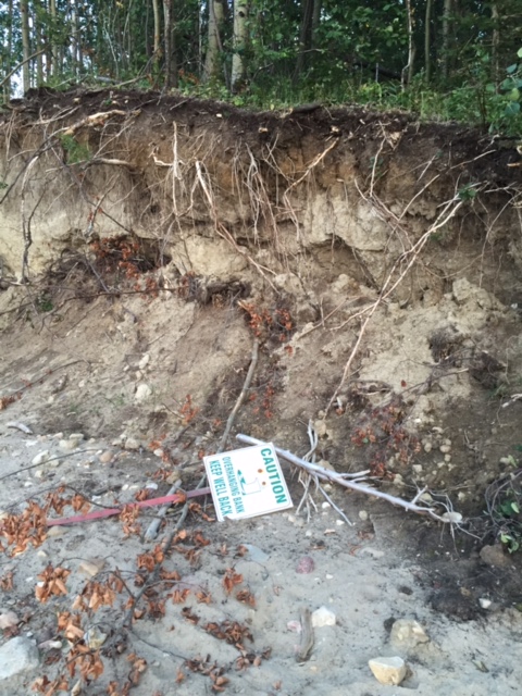 We walked along the same lakeshore as in my earlier story. The sign cautioning us to keep back from the edge was now lying on the ground below. Without a firm foundation to hold it in place it couldn’t remain standing.
