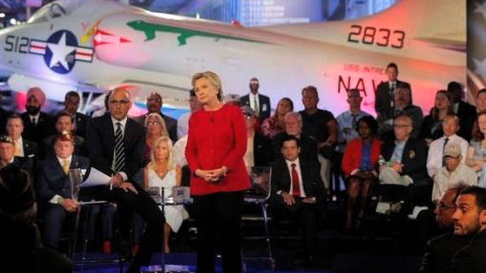In news from the campaign trail, Hillary Clinton and Donald Trump both spoke at a national security forum held on the Intrepid, a decommissioned aircraft carrier, in New York City Wednesday night. This is Donald Trump.