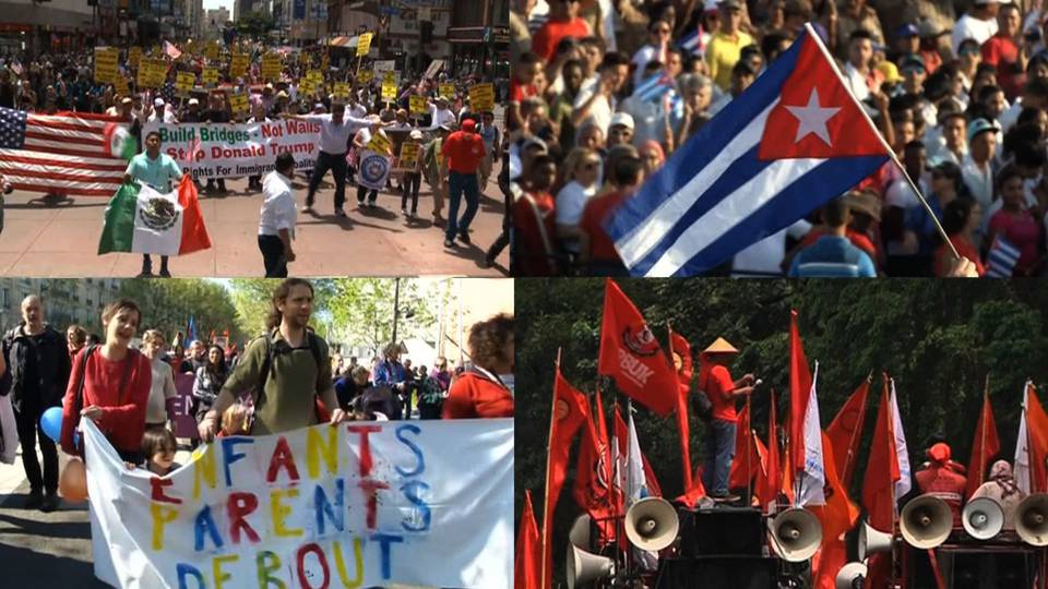 Sunday was May Day, and workers took to the streets in dozens of cities across the world, including in Havana, Paris, Santiago, Istanbul, Seoul and across the United States. In Los Angeles, organizers marked the 10th anniversary of the historic 2006 May Day, when 1.5 million people marched for immigrant rights, by demonstrating against Donald Trump. This is organizer Juan José Gutiérrez.