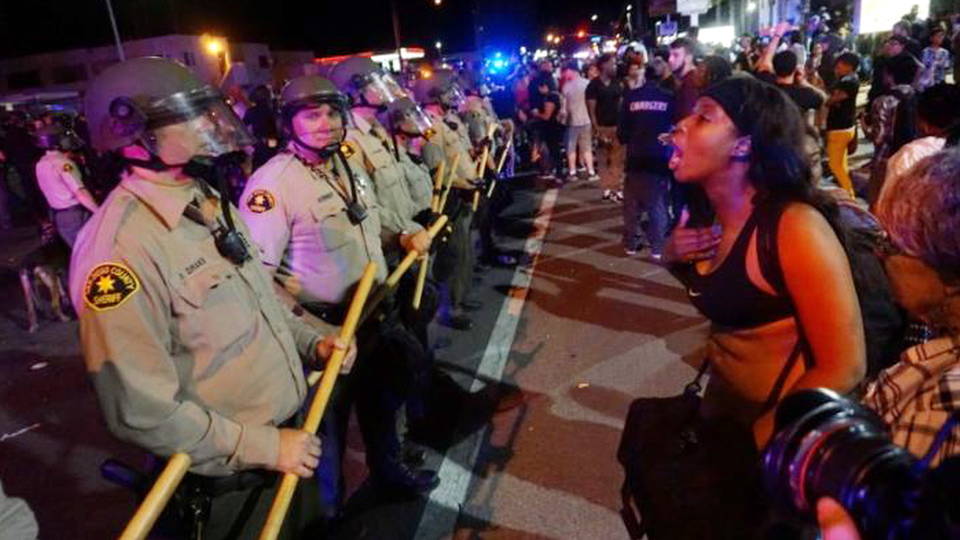 Protests continued Wednesday in the San Diego, California, suburb of El Cajon, where police shot and killed an unarmed African-American man Tuesday after his sister called 911 to report her brother was having a mental health emergency. Eyewitnesses in El Cajon said Alfred Olango was holding his hands up when he was tased by one police officer and then fired upon five times by another officer. Police initially said they fired when Olango pulled out an object. On Wednesday, the police admitted that this object was, in fact, an e-cigarette. This is protester Asaac Ali.Asaac Ali: "It’s not just about how I’m feeling about it. It is about how America feel about it, because police are terrorizing America, each and every state. They’re killing people each and every corner. This is a time for America to look into it. This is not ISIS in the Middle East. We have one here: Police are a terrorist, killing people more than ISIS. That’s what we need to look at it, really careful."
